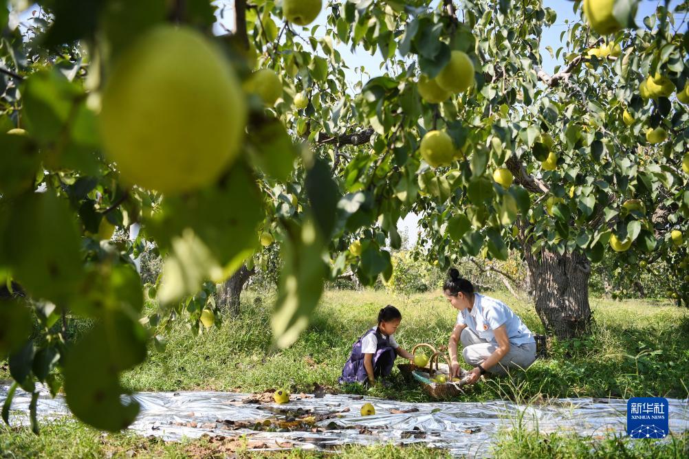 9月22日,游客在赵县乐植堂梨果种植专业合作社的梨园内采摘雪花梨。新华社记者 牟宇 摄