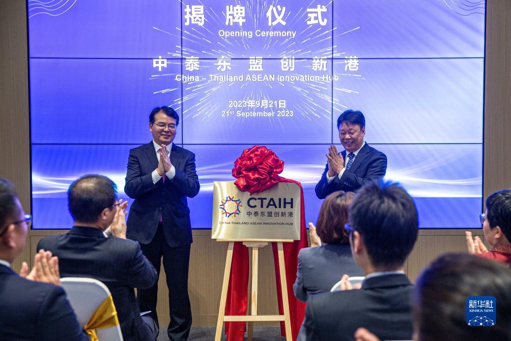 9月21日,在泰国曼谷,与会嘉宾参加中泰东盟创新港揭牌仪式。新华社记者王腾摄