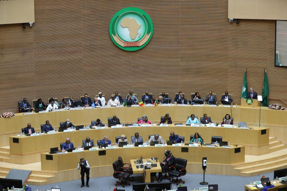 这是2月18日在埃塞俄比亚首都亚的斯亚贝巴拍摄的非洲联盟第36届首脑会议现场。新华社记者汪平摄