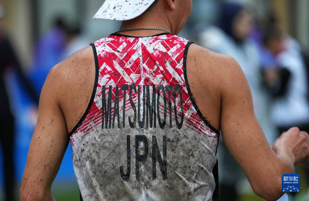 9月22日,日本选手松本谅在男子个人激光跑比赛后。