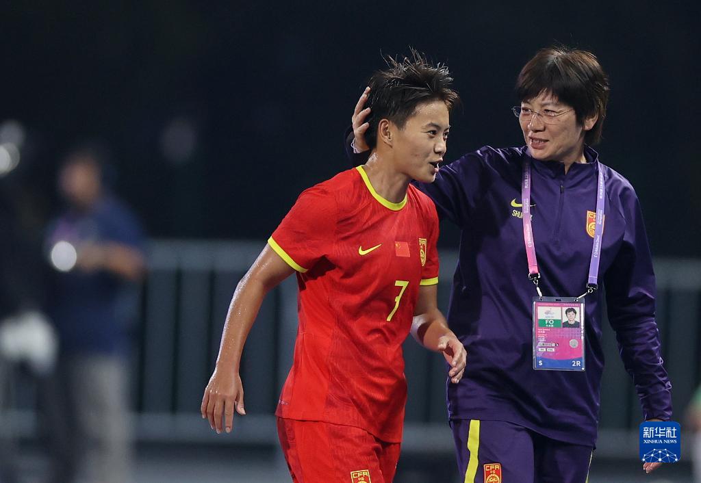 当日,在杭州市临平体育中心体育场举行的杭州亚运会女子足球小组赛A组比赛中,中国队以16比0战胜蒙古国队。新华社记者 贾浩成 摄