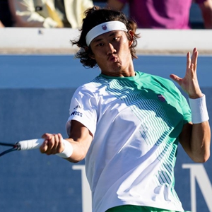 9月1日,张之臻在美网男单第三轮比赛中回球。新华社记者刘杰摄