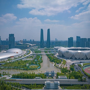 这是2023年4月26日拍摄的杭州奥体中心。新华社记者 江汉 摄