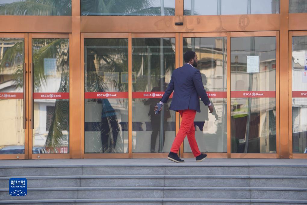 9月21日,在刚果(布)首都布拉柴维尔,一名顾客走进中刚非洲银行总部。新华社记者 史彧 摄