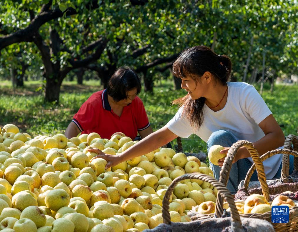 九月,安徽省宿州市砀山县梨园里一派忙碌的收获景象,梨农们抢抓晴好天气,采摘销售新鲜酥梨。近年来,砀山酥梨产业越来越旺,成为群众致富增收的“金名片”。目前,全县梨树种植面积约为40万亩,其中酥梨约25万亩。