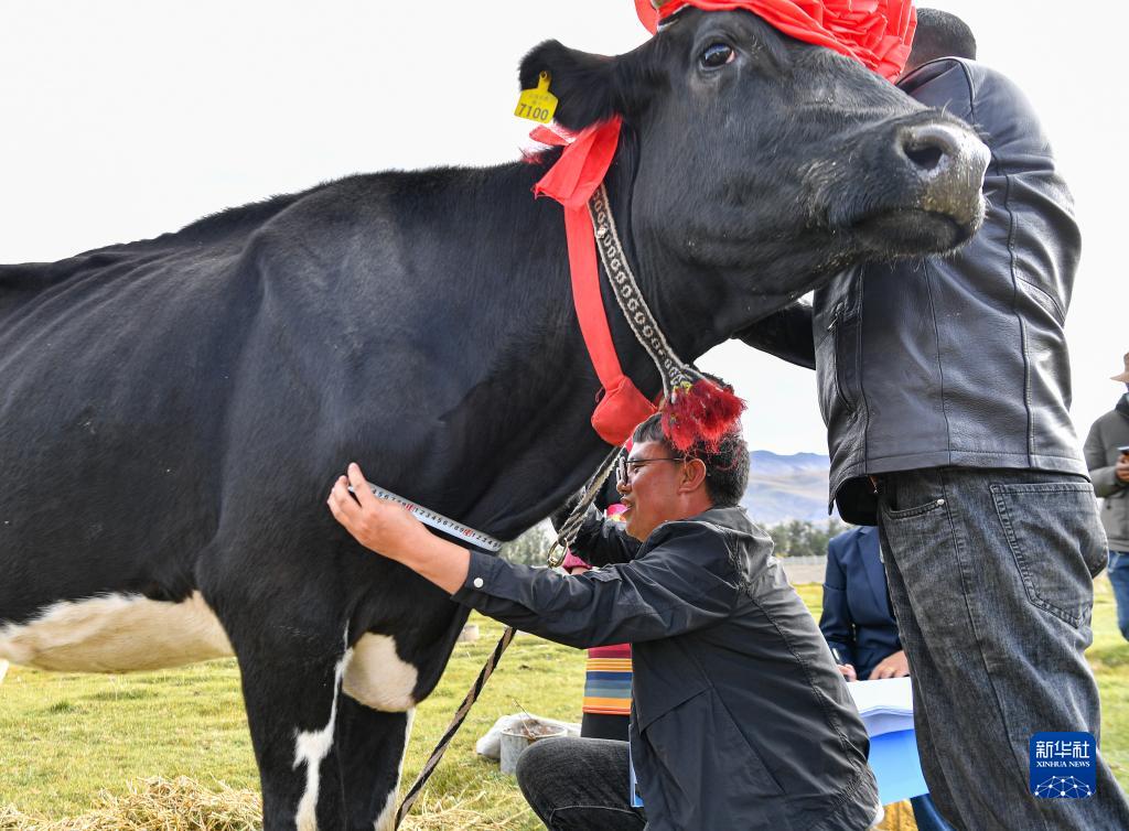 当日,第六届“聂雄杯”西藏高原·隆子黑白花优质奶牛竞赛在西藏山南市隆子县进行决赛。按照早晚各一次现场挤奶称总量计算、体形外貌和系谱档案三条指标进行评比,一头名叫“扎西”的奶牛夺冠。