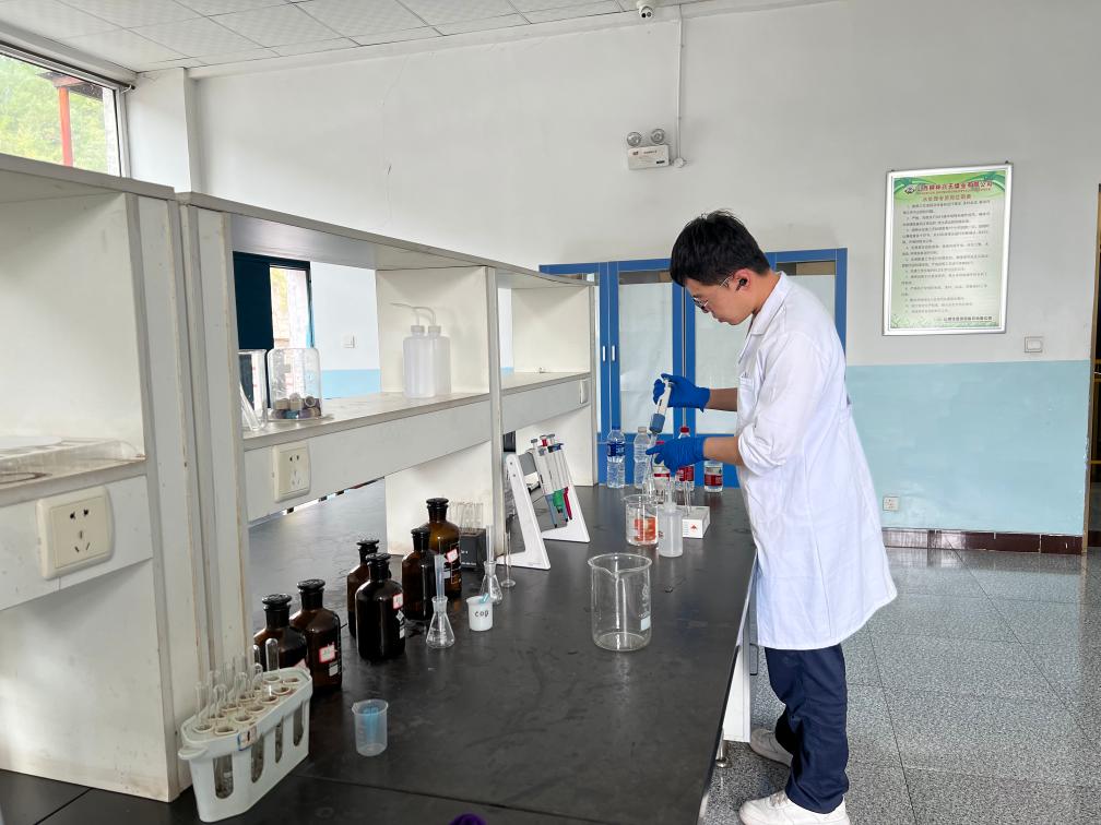 8月23日,柳林县兴无煤矿矿井水处理厂工作人员正在进行检测工作。新华社记者张磊 摄