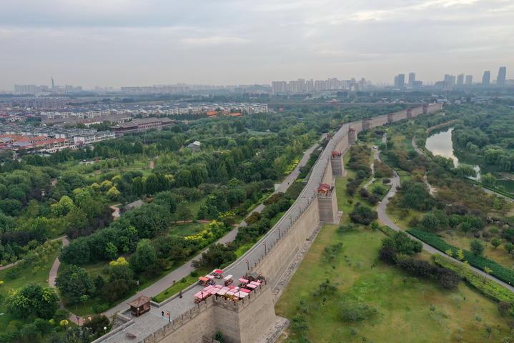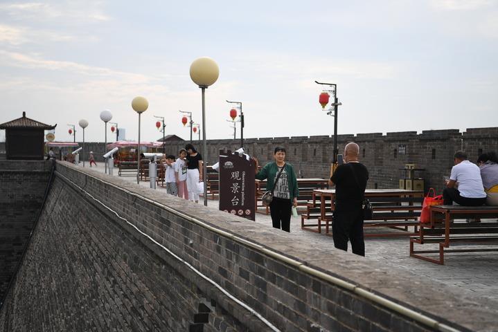 9月23日,游客在河北省石家庄市正定古城城墙上游览。新华社记者 牟宇 摄