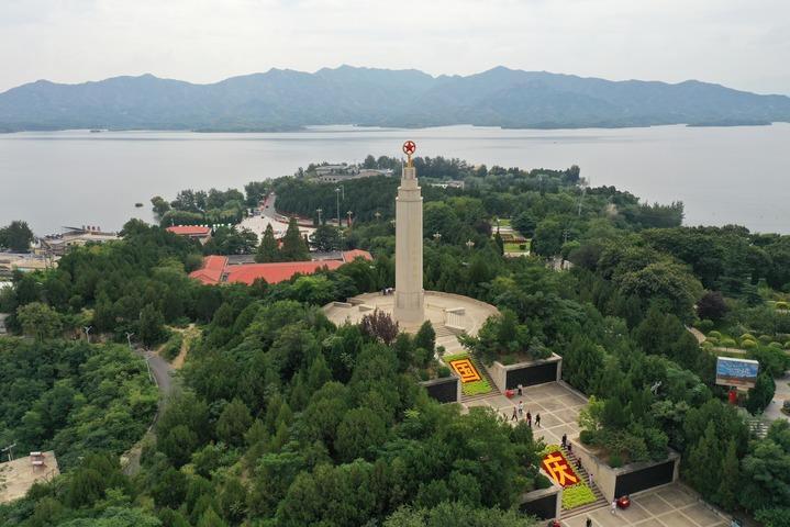 这是河北省石家庄市平山县西柏坡纪念塔(9月23日摄,无人机照片)。新华社记者 牟宇 摄