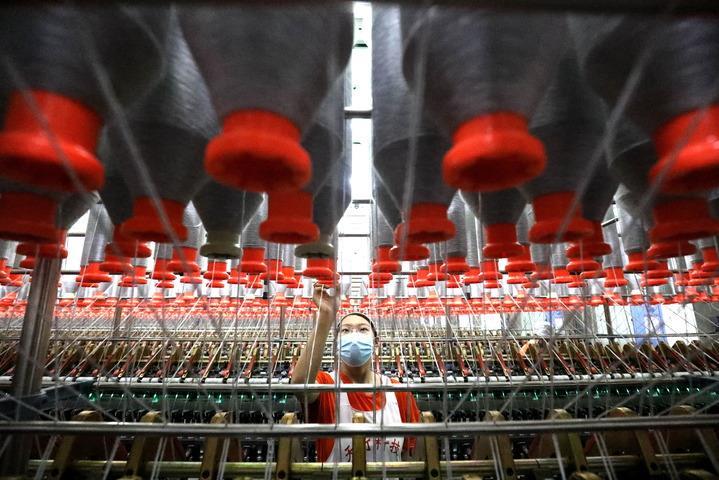 2月16日,工人在河北省石家庄市藁城经济开发区一家化纤企业生产车间内工作。新华社记者 骆学峰 摄