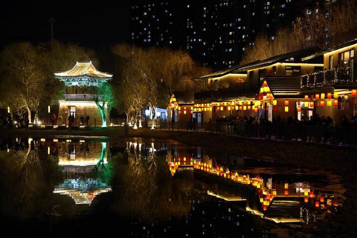 这是2月1日拍摄的河北省石家庄市栾城区古栾水镇夜景。新华社记者 骆学峰 摄