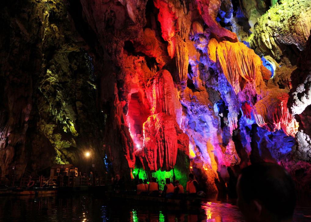 从码头乘船进入水溶洞,水路结束后则可游览旱洞