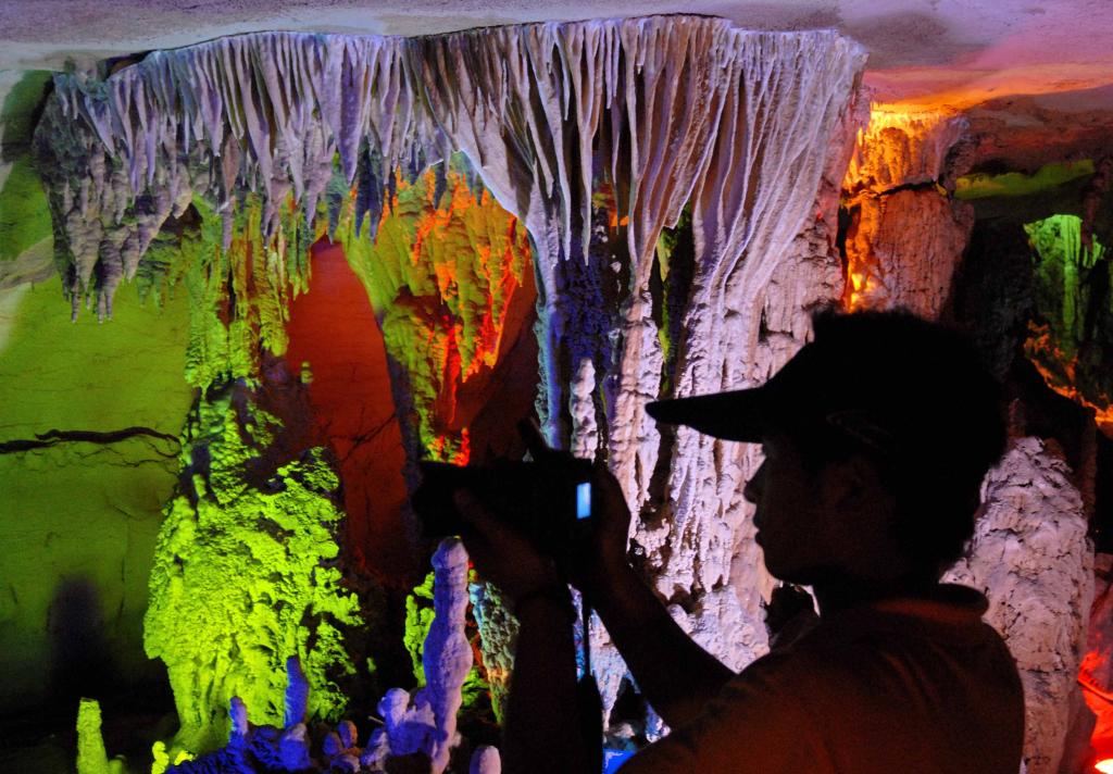 一名游客在夜郎洞观赏景观。新华社发(乔启明 摄)