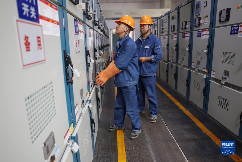 工作人员在宁夏红寺堡扬水管理处红三泵站配电室检查调试设备(9月7日摄)。