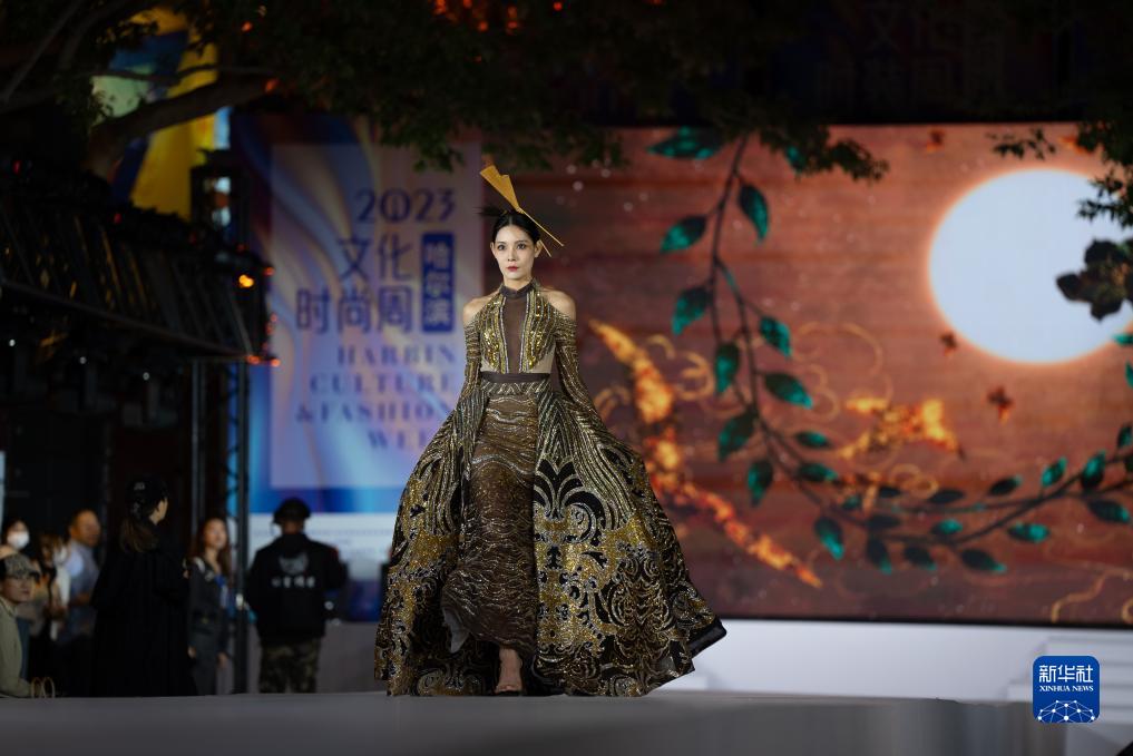 9月24日,模特在第二届哈尔滨文化时尚周开幕式上展示服装。