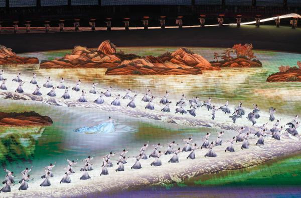 三年前接到亚组委邀请时,楚艳坦言这一任务具有挑战性:“‘国风雅韵’大背景是展示中华文化,亚组委和我们都认为与第19届亚运会举办地杭州、浙江当地的江南文化有最深联结的还是‘宋韵’这一生活美学精神。但是到底什么是‘宋韵’?如何在国际体育盛会的开幕式充满活力的舞台上展现带着婉约、雅致气质的‘宋韵’?如何配合现场高科技的视觉影像,令‘宋韵’保持传统魅力又不显得古旧,并注入新时代的美学精神?”