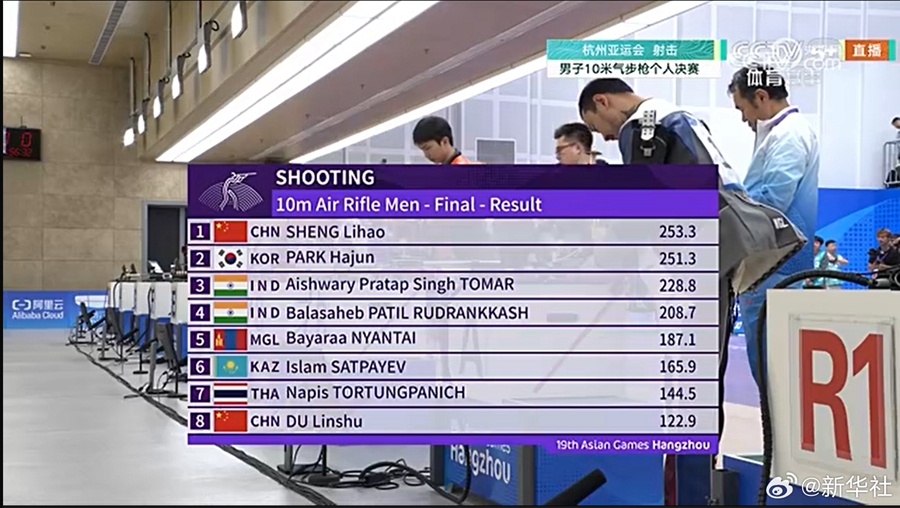 25日,在杭州亚运会射击男子10米气步枪个人决赛中,中国选手盛李豪夺得冠军,为中国拿下又一枚金牌,并以总成绩253.3分刷新世界纪录!(记者:郑梦雨 林德韧 王春燕)