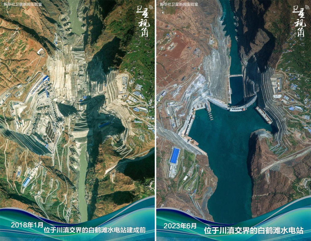 ↑2023年与2018年对比,白鹤滩水电站已投产发电。
