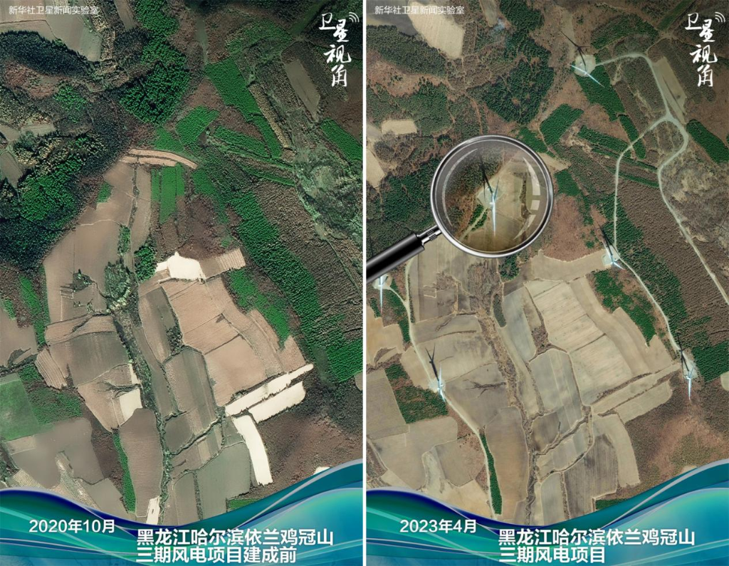 ↑2023年和2020年对比,黑龙江哈尔滨依兰鸡冠山三期风电项目实现并网发电。