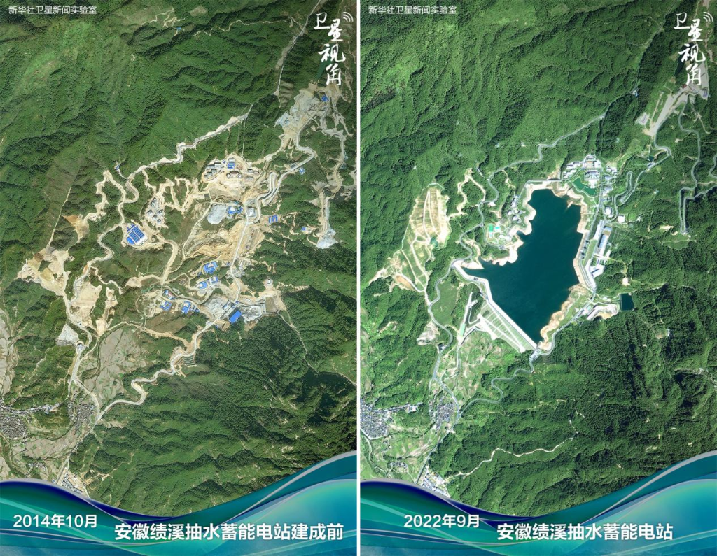 ↑2022年与2014年对比,“超级充电宝”安徽绩溪抽水蓄能电站已投产运行。