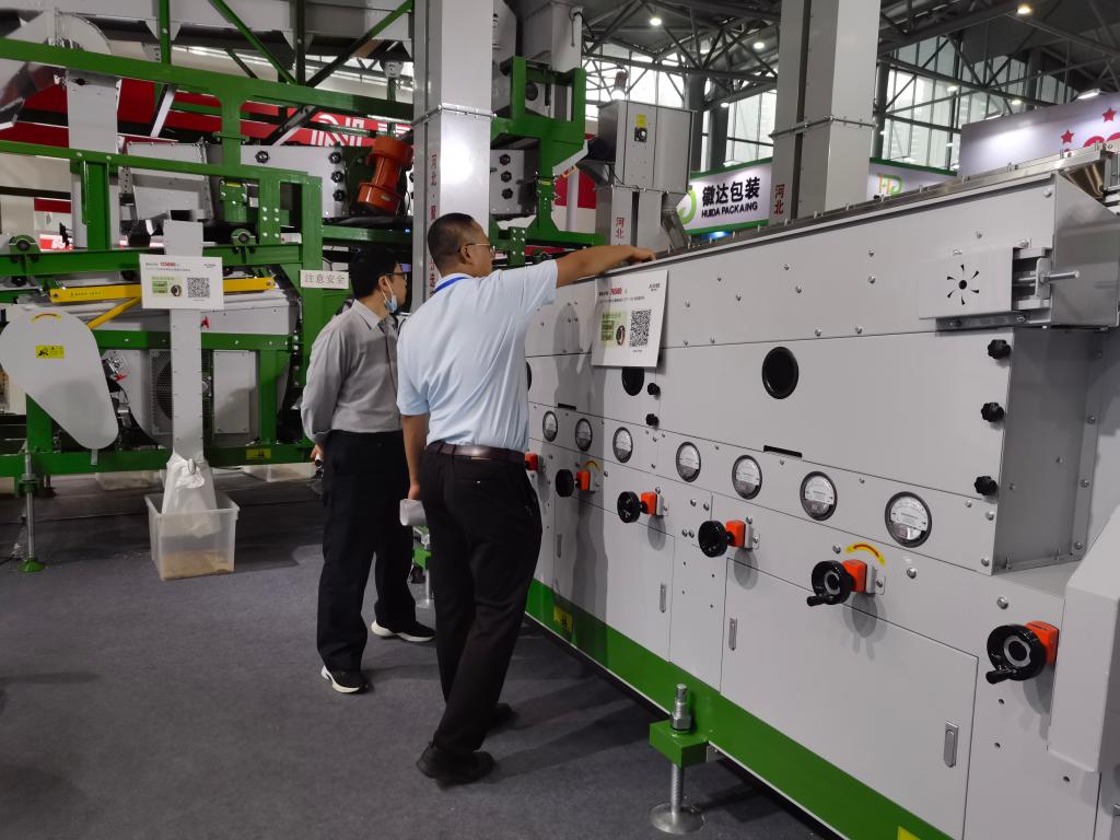据介绍,这两套装备集结了200余项发明专利,此次展示的最新装备属于迭代创新产品,通过更换筛片、调节角度和风压等参数,可以适应多种农作物种子筛选。