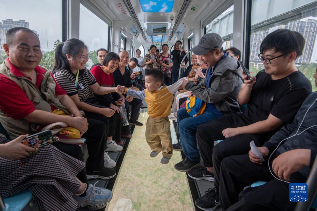 9月26日,乘客体验空轨列车。新华社发(杜子璇 摄)