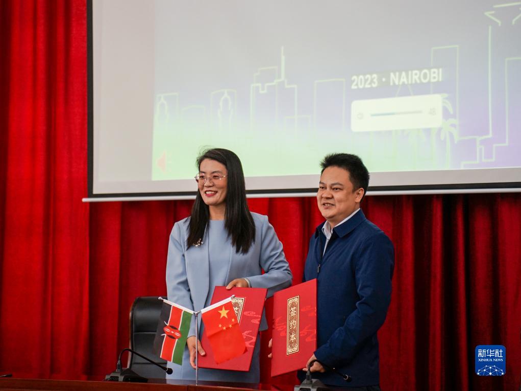 这是9月26日在肯尼亚内罗毕大学孔子学院拍摄的中文教材《东非实用中文课本》出版签约仪式现场。中文教材《东非实用中文课本》26日在肯尼亚内罗毕大学孔子学院举行出版签约仪式。这是肯尼亚首套结合东非中文教学特点编纂的中文教材。新华社记者 李亚辉 摄