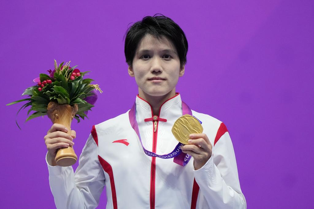和黄雨婷同样斩获三金的还有李冰洁,她以创赛会纪录的成绩夺得女子400米自由泳冠军。游泳当日的六枚金牌中国队拿下四金,还打破男子4X100米混合泳接力亚洲纪录。中国香港名将何诗蓓以52秒17打破女子100米自由泳亚洲纪录并夺冠,这也是她本届赛事的第二枚金牌。日本选手本多灯夺得男子400米个人混合泳金牌,这是日本队本届亚运会游泳项目第一金。