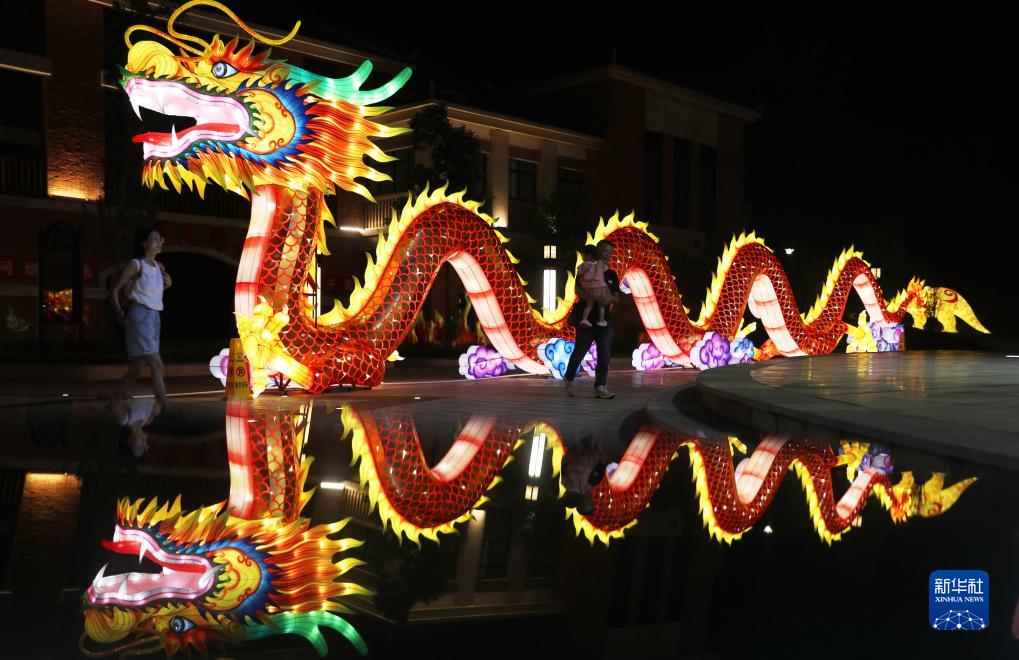 国庆节到来之际,湖南省衡阳市南岳区在祝融文旅小镇举办彩灯艺术节。