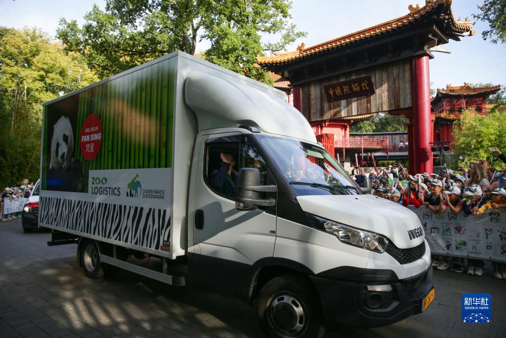 9月27日,装着大熊猫“梵星”的汽车启程离开荷兰雷嫩的欧维汉兹动物园。新华社记者 郑焕松 摄
