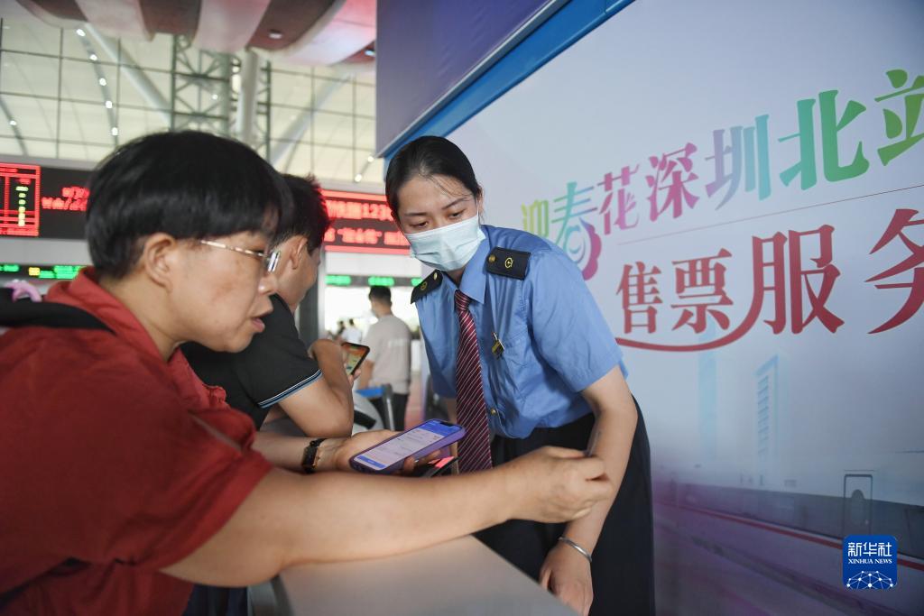 9月28日,工作人员在深圳北站为旅客服务。