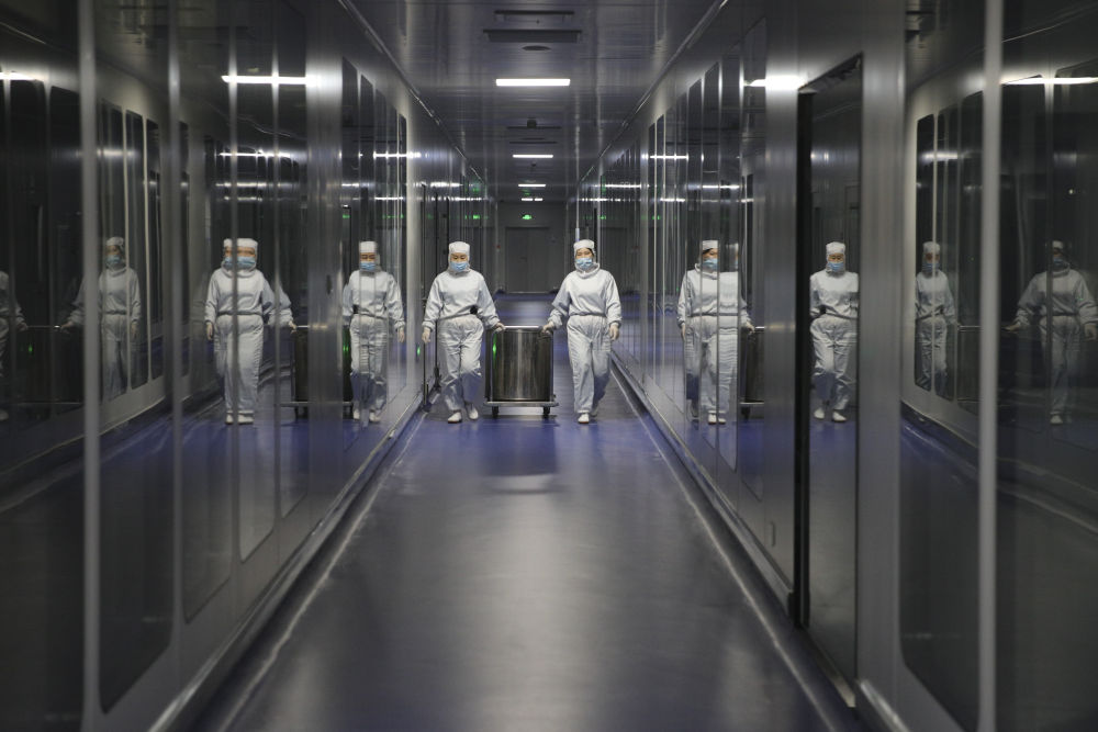 在中国(黑龙江)自由贸易试验区哈尔滨片区的哈尔滨派斯菲科生物制药股份有限公司生产车间内,工作人员在进行生产作业(2020年11月13日摄)。新华社记者 张涛 摄