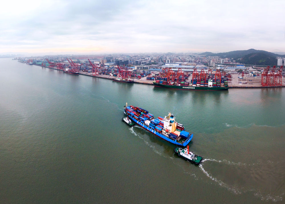 这是2023年8月21日拍摄的宁波舟山港梅山港区。新华社记者 魏一骏 摄