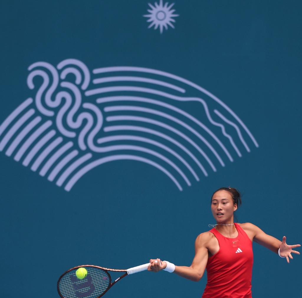 9月28日,郑钦文在比赛中回球。新华社记者 孟晨光 摄