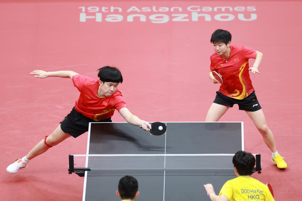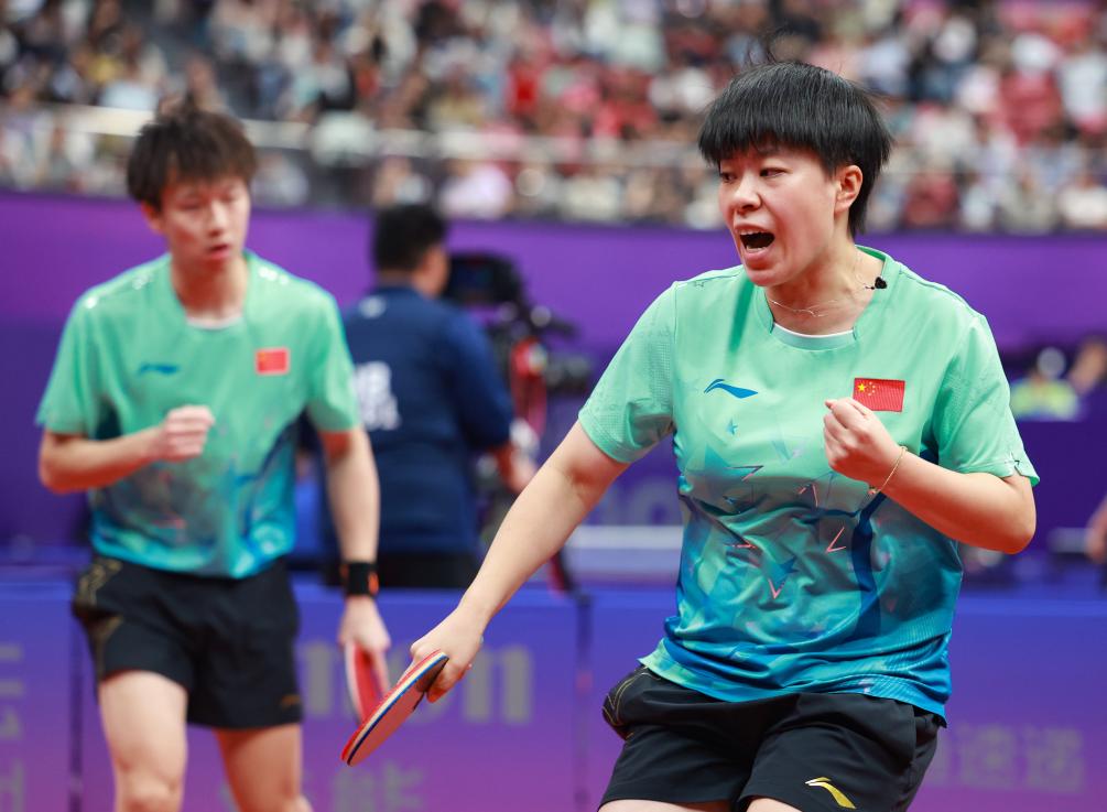 在女双第二轮淘汰赛中,中国组合孙颖莎/王曼昱和陈梦/王艺迪均一局未失,轻松晋级。