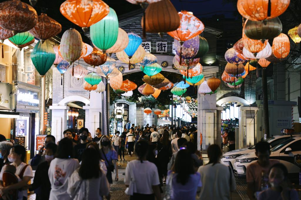 南强街巷企划经理何云生说,“像中秋节我们组织了我们传统的汉服巡游以及一些传统的祭月活动,同时我们也会有我们的长街宴,以及我们的景新花鸟舞厅等复古元素的一些派对演出。”
