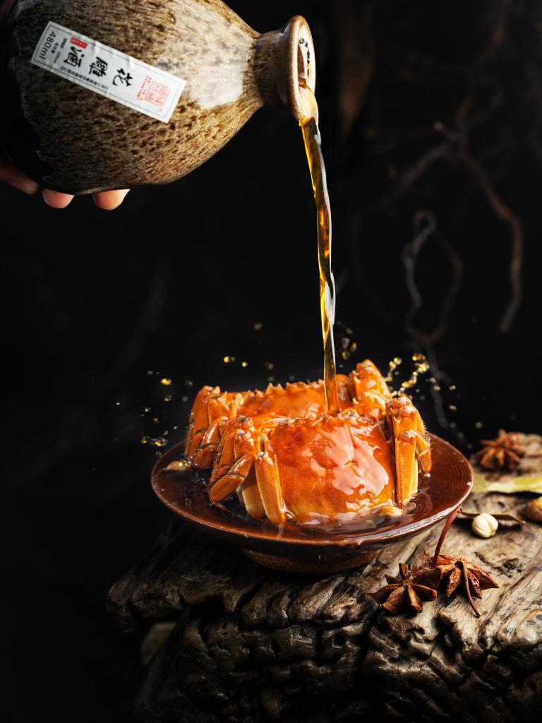 “用的是10年花雕酒,醉蟹出来的时候比较香一点,酒香味比较浓一点。”