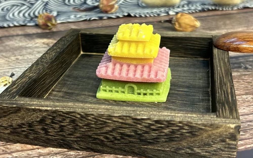 在太原市晋源区古唐街“天泰昌”店铺里,记者看到印有太原古县城、双塔寺、钟楼街等太原文化地标的套色米月饼正在出售,以钟楼街为原型的立体造型月饼更是引得顾客围观。