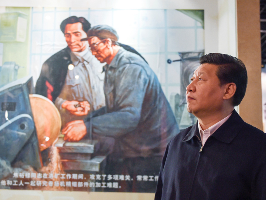 2014年3月17日,习近平总书记在河南省兰考县调研指导党的群众路线教育实践活动时,参观焦裕禄同志纪念馆。新华社记者 李学仁 摄