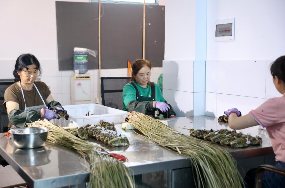 工人将刚刚捕捞上来的大通湖大闸蟹捆绑装箱。(钟浩 摄)