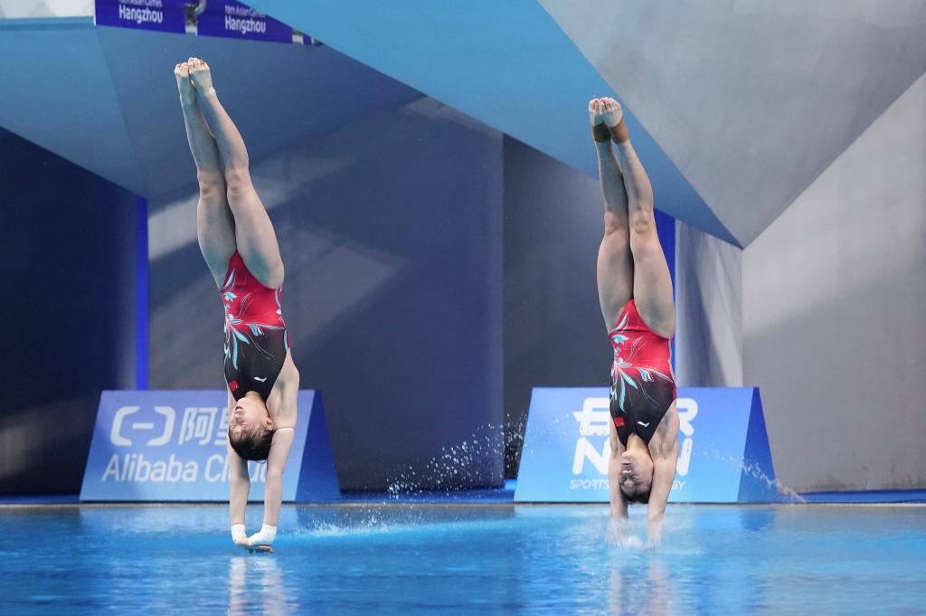 10月1日,亚运会跳水比赛迎来女子双人3米板和男子双人10米台的较量,中国选手陈艺文/昌雅妮和杨昊/练俊杰出战。