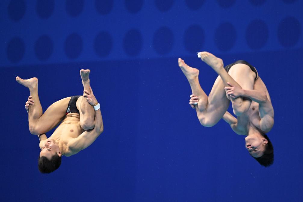 在率先进行的女子双人10米台比赛中,全红婵/陈芋汐的每一跳都得到全场观众的喝彩和掌声,动作规格高、同步性好,远远超过其他组合,最终两人以375.30分为中国跳水队摘得第一金。日本组合荒井祭里/板桥美波以290.04分、马来西亚组合萨布里/帕姆格以266.94分收获银牌和铜牌。
