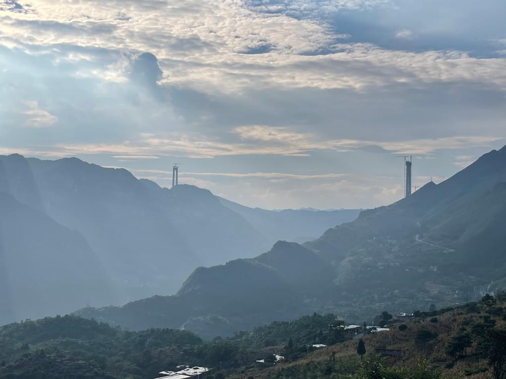 花江大峡谷壁立千仞,两岸地势陡峭,大桥核心施工区紧邻悬崖绝壁。工人们不仅时常要在距离地面好几百米的高空开展大重量吊装作业,还要应对突如其来的暴雨、大风天气,施工难度可想而知。国庆节期间,为有序推进大桥施工进度,200多名技术、施工人员坚守大桥建设一线。