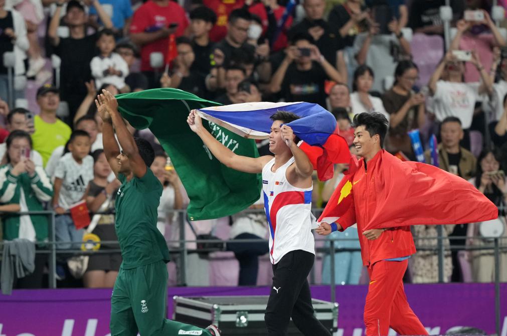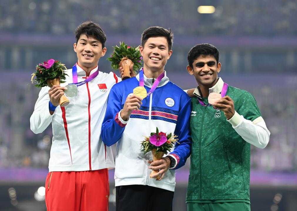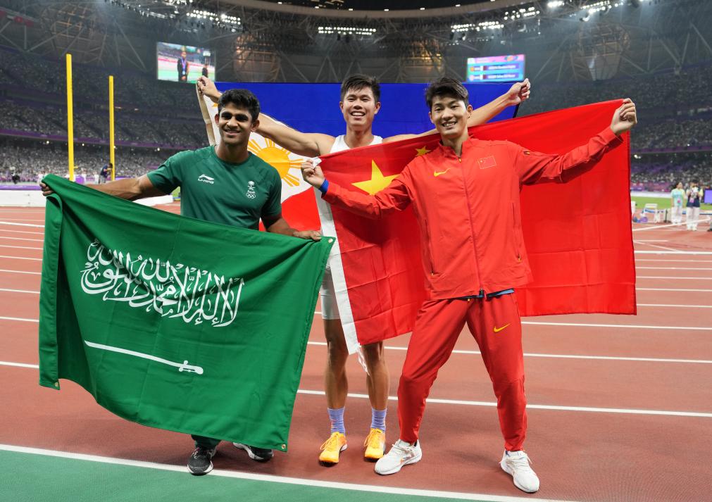 他最终没能越过6米02的横杆。但他和黄博凯、希扎姆,这三个离家千万里的亚洲孩子,终于在离家更近的土地上,一起披上了各自祖国的国旗,收获了各自的第一块亚运奖牌。