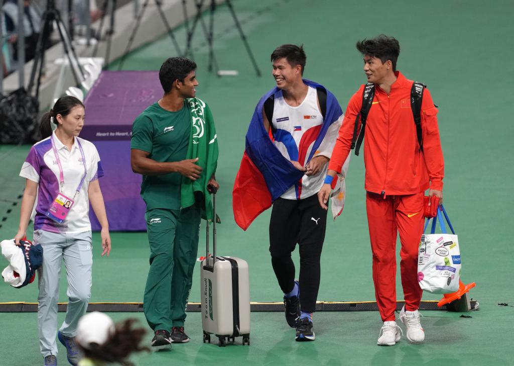 奥贝纳的杭州之行稍显曲折,两位异国队友帮了他不少忙。在结束了于美国尤金举行的2023钻石联赛总决赛四天后,奥贝纳抵达了浙江湖州备战亚运会,那时距离杭州亚运会开幕还有一周时间。他说,由于菲律宾代表团条件有限,他只能呆在沙特阿拉伯队的训练营中训练,那正是希扎姆所在的代表团。