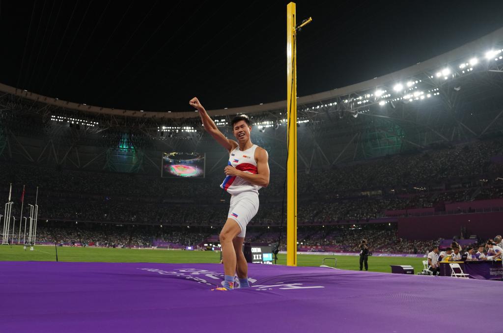 新华社杭州10月1日电(记者王沁鸥、吴俊宽、黄垚、黄昕欣)9月30日晚的杭州亚运会田径赛场,27岁的菲律宾男子撑杆跳高选手奥贝纳以5米90的成绩打破赛会纪录。在确保夺金后,他开始向亚洲纪录发起冲击。