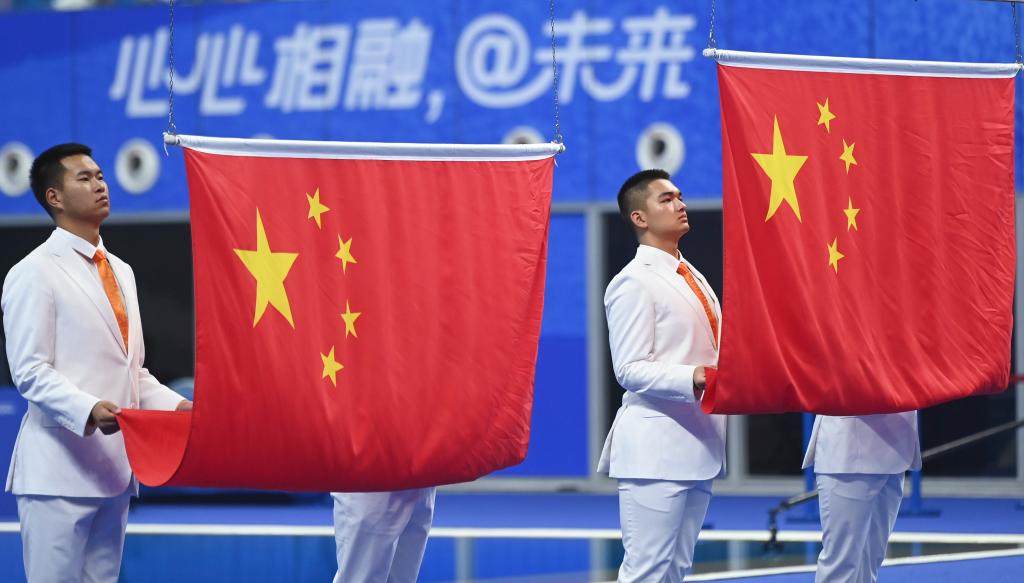 赛后,侯志慧面对新华社记者的镜头祝福祖国: