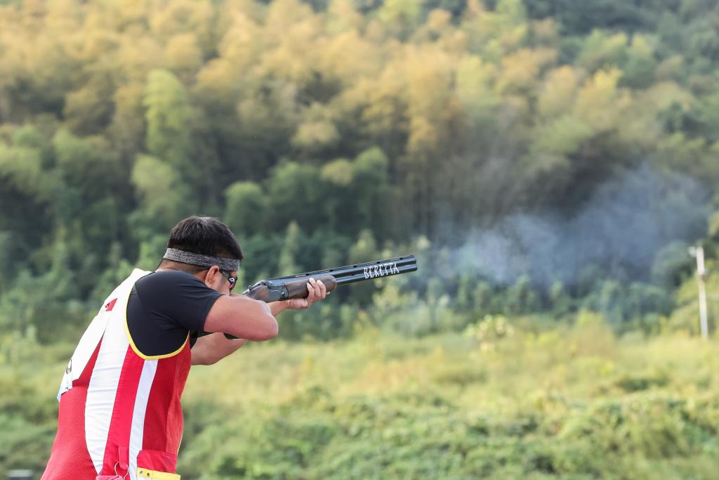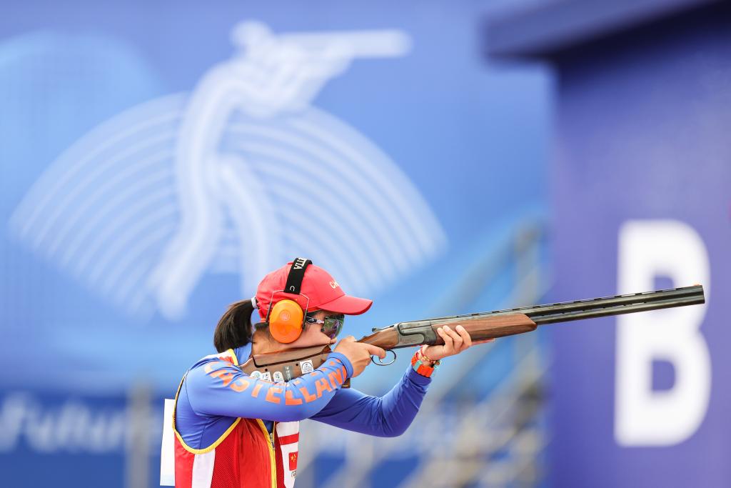 10月1日,张鑫秋在杭州亚运会射击项目女子多向飞碟个人决赛中。新华社记者 单宇琦 摄