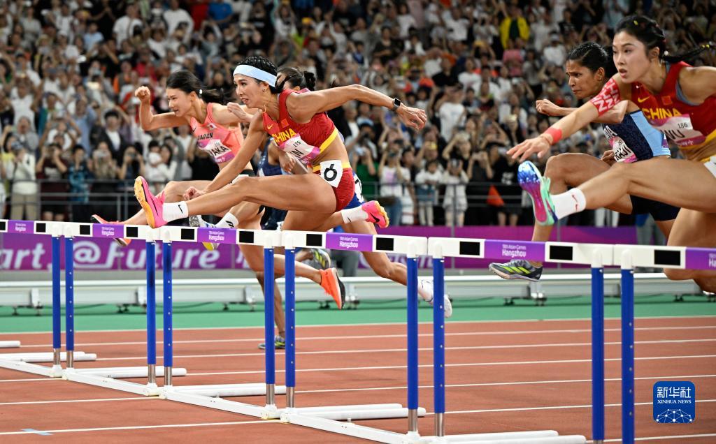 当日,杭州亚运会田径项目女子100米栏决赛在杭州奥体中心体育场举行。