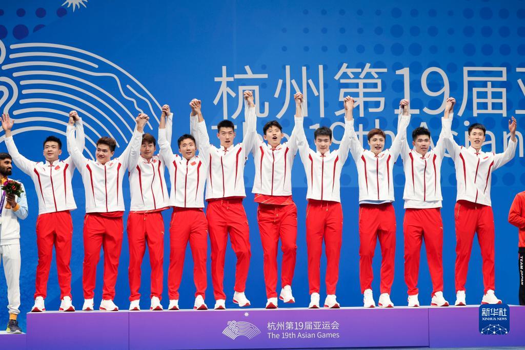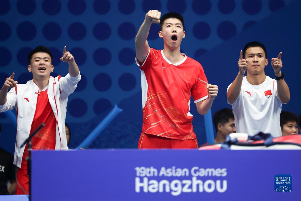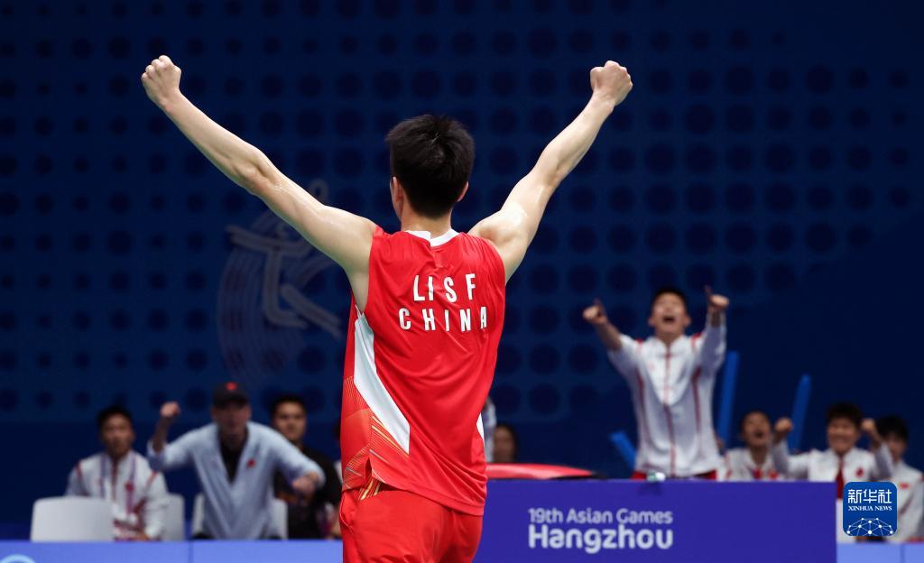 当日,在杭州亚运会羽毛球男子团体决赛中,中国队以3比2战胜印度队,夺得冠军。
